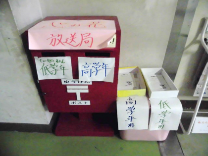 心の花ポストに投かんされた「心の花」の中から選ばれたものが給食の時間に放送されています。「たてわりフレンドのときに、6年生が優しくほうきの使い方を教えてくれてうれしかったです。私が6年生になったときも優しく教えてあげようと思いました(1年女子)」「学芸会の楽器演奏の前に緊張していたら、友達に頑張ってと言われて、頑張れました。そのとき、友達ってやっぱりいいなって思いました(5年女子)」など、笑顔あふれるものがたくさん放送されました。