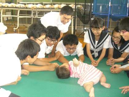 2年生では、地域の保健センターと連携し、本物の赤ちゃんとふれあうという体験を行います。実際に赤ちゃんを抱かせてもらい、ぬくもりを感じることで、いのちの尊さを肌で実感していました。また、保護者の方から生徒に向けてメッセージを頂戴し、中には涙ぐみながら読んでいる生徒もおり、自分という存在の大切さを認識していました。