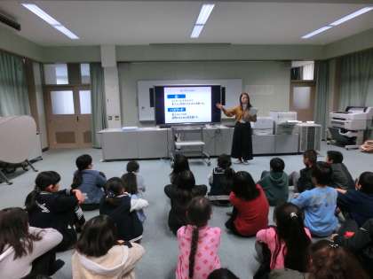 インターネットの基本的な内容から、インターネットに潜む危険性について学ぶことができました。特に、インターネットを使って情報のやりとりをする場合、「個人情報」の取扱いや「悪口」「うそ」などの情報発信にも注意が必要だと教えていただきました。また、安全に正しく使用するためのルールやマナーを動画などで分かりやすく教えていただき、社会科での学習を踏まえて勉強することができました。
