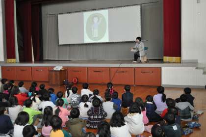 緑丘小学校では、人権集会が行われました。校長先生による「どんなかんじかな」(中山千夏 文)という絵本の読み聞かせが行われました。
