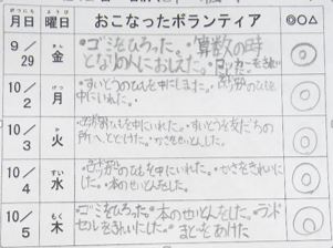 子供たちの感想には、「みんなが笑顔になって嬉しい」「助けた子が、今度は私を助けてくれた」と書かれており、中には期間が終わっても、引き続き“ちょボラ”に取り組む児童もいます。