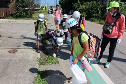 今年は、とても暑い日でしたが、子供たちは一生懸命ごみを拾っていました。途中の水分補給の時に子供たちが、「ごみがたくさん落ちているから頑張らないとね」「自分たちはこんなふうに捨てないようにしようね」と話をしていたことが、とても印象に残りました。この活動を通して、通学路や自分たちの住んでいる地域を美しくしようという意識を高めることができました。