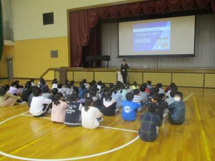本校の児童アンケートの結果では、全校で30%近くの児童が自分専用のスマートフォンを持っており、自由に使える環境にあります。また、その割合は、高学年になるにつれ増えていっています。そこで、本校では、毎年、学校公開日に合わせ、「スマホ安全教室」を行っています。スマートフォンの安全な使い方や危険性について、子供たちに知らせるとともに、保護者にも参観してもらって理解を深めています。