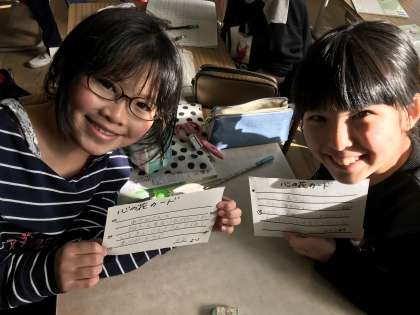 昨年度から、人権週間の全校活動として、児童会の代表委員会が、「心の花カード」に取り組みました。心の花カードには、友達からしてもらってうれしかったことや、友達の優しい言動についての賞賛を記入します。記入したカードを委員会で集め、各学年に特設した掲示板に掲示して紹介しました。集まったカードの中から、紹介したいカードを選んで給食時のお昼の放送で紹介しました。子供たちは、静かに耳を傾けていました。中には、「すごいね!」と、つぶやく声もありました。カードの紹介の後に、「みんなちがって、みんないい」の曲を流します。にこにこ笑顔でリズムをとる子もいます。