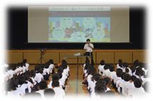 子供たちに、ゲーム依存症についてのアンケートを行いました。10項目中で、7から8問あてはまるとゲーム依存症の予備軍になるという話を聞きました。5、6年生の子供たちは、「時間を決めてやらなければいけない」「勉強がおろそかになっていくんだ」「顔が見えない相手とチャットするときは気をつけよう」「知らない相手とけんかになることは、お互いの心を傷つけあっていることになって、気分のよいものではない」「依存症になると大変なことなのに、大変だと感じなくなってしまう感覚が怖い」という感想がありました。