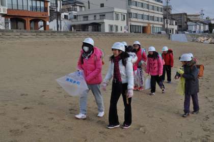 今年は「ウミガメ隊」を結成し,定期的に清掃に取り組んでいます。9月までは,毎週水曜日の登校前にゴミ袋を片手に流木やゴミを集めます。子どもたちが活動することで,海岸は少しずつきれいになっています。しかし,大きく変わったのは海岸だけではありません。一番大きな変化が見られたのはまわりの大人たちのようです。「子どもたちが頑張っているなら」と,今では海岸近くに住む方や,観光協会の方なども参加するようになりました。子どもたちが始めた活動が,島全体に広がりつつあります。
