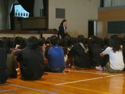 平成24年10月30日(火)にNTTの方を講師にお招きして、5・6年生を対象に屋内運動場でケータイ安全教室を開きました。この日は学校公開日だったので、保護者の方々にもご参加いただきました。