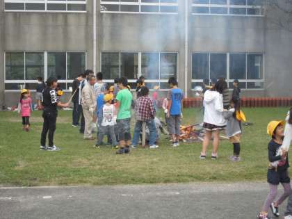 今年は,収穫したさつまいもを10月23日に中庭で全学年そろって焼きました。普段お世話になっている方を来賓として招き,児童と一緒になって作っていただき,盛大に行うことができました。今年のさつまいもは,出来がよく,子どもたちは口々に「おいしい。」と話していました。
