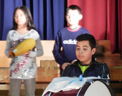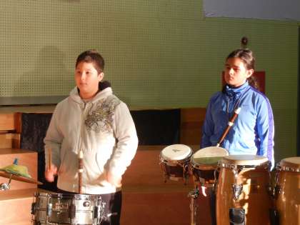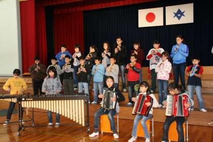 すると子どもたちは,今まで以上に日本語5の教室に行って,自分の楽器以外の練習をするようになりました。「ねえ,△△君,そのリズム分からないから,もう一回やってみて。」「いいよ。じゃあ,ゆっくりやってあげるよ。」「Cのはじめのところがいつもあやふやだから,誰か,Cの少し前からアコーディオン弾いてくれないかなあ。」「□□君,大太鼓を叩いてくれる?私,コンガを叩きたいから。」日本語5の教室は,楽器の音とともに普段あまり会話を交わさない友達ともたくさん会話をする子どもたちが溢れていました。