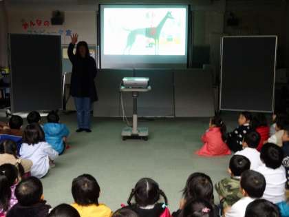 本校では、毎年人権週間に、図書ボランティアによる全校児童への読み聞かせを行っています。今年度は、12月3日に行いました。低学年は、あきやまただし作「あしなが」、高学年は、アリソン・ウォルチ作「わたしのいちばん あのこのいちばん」を紹介しました。スクリーンを使っての読み聞かせを各学年ごとに行った後、振り返りの時間を取りました。子どもたちに、人権について考える場となっています。
