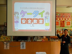 10月10日(金)に、5・6年生を対象に携帯安全教室を実施しました。講師として、NTTドコモの方に来ていただきました。自分にも起こり得る身近なトラブルについての気づき、スマートフォン・携帯電話を安全に使うためにはルールとマナーを守ることが必要であることを、アニメーションやスライドを使って学習しました。