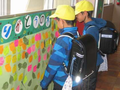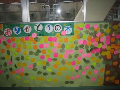 相野山小学校では、人権週間に伴い、“ありがとうの木”に一週間取り組みました。日頃お世話になっている方や、上級生、友達、先生に感謝のメッセージを書いて掲示板に貼っていきます。