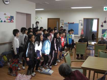 みよし市立北部小学校の3年生が、総合的な学習「わたしたちにできる福祉について考えよう」の一環として、老人介護施設「つばめの家」へ行き、お年寄りと交流しました。