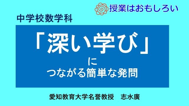志水廣 2053 動画 授業は面白い 「深い学び」につながる簡単な発問