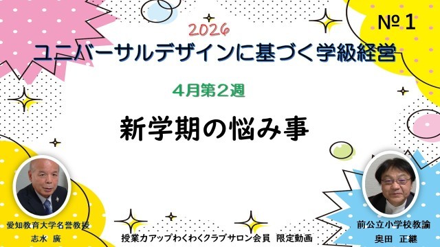 志水廣 1232 動画 ユニバーサルデザインに基づく学級経営 4月第2週 新学期の悩み事