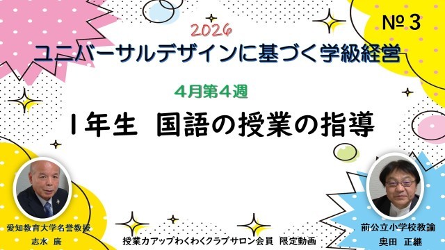ユニバーサルデザインに基づく学級経営 第3回 4月第4週「1年生 国語の授業の指導」