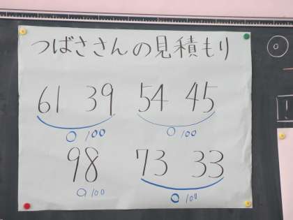 数字のペアを示し、そこから100のかたまりを気づかせた。