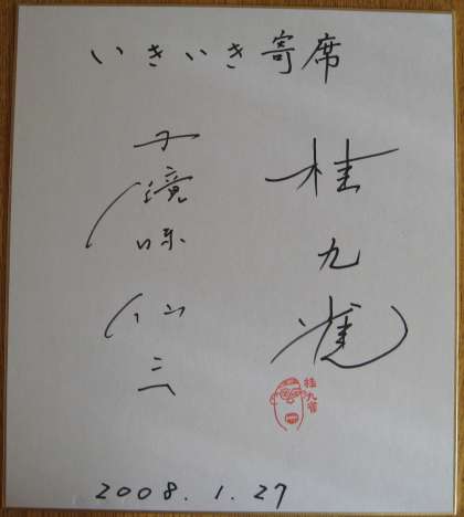 第10回 いきいき寄席 平成20年1月27日 色紙