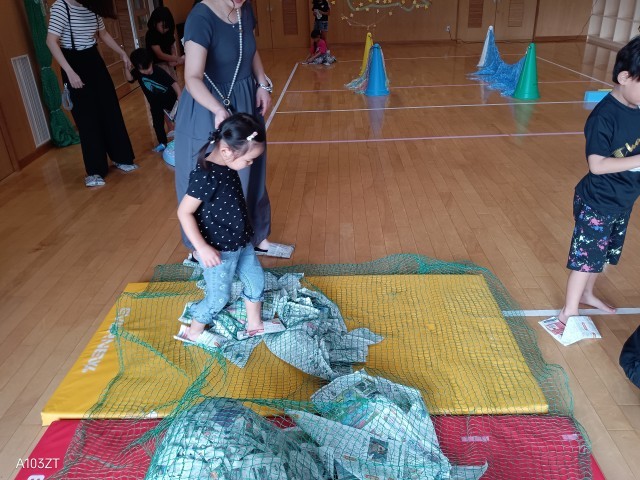 最初は緊張気味の親子も体を動かすうちに笑顔になり、必死になってゲームを楽しんでいました。