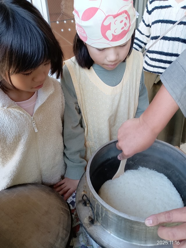 釜底のご飯は黒っぽく、おこげがこども達の目に新鮮に映っていました。
