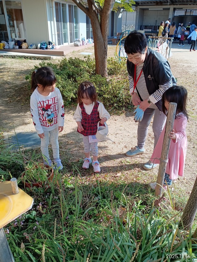 こども達はその様子に興味を示し、水やりをする頃にはさらに「やってみたい」という小さなこども達も加わり、一緒に活動をしました。