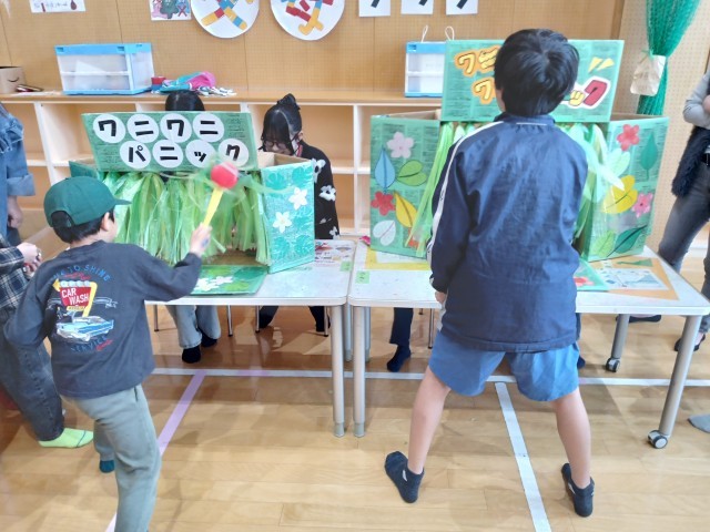 児童館サポーターは工作を、父母クラブの有志でゲームコーナーを、