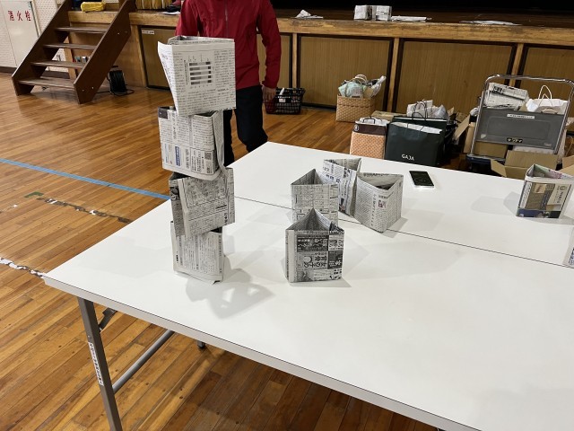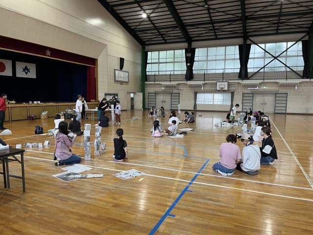 10月4日に今年度2回目となる環境美化活動を行いました。生憎の雨模様でしたが、来月の運動会に向けグラウンドの草取りを行いました。美化活動後は地域コーディネーターの方にご協力いただき、子供と楽しめる「新聞紙で作って遊ぼう」と題して、新聞紙を使ってブロックを作り、高く積み上げるレクレーションを行い、参加してくれた親子の楽しむ姿がみられました。また、コーディネーターの方からは災害時にも役立つ新聞紙を使ったスリッパや、箱、さらには避難所で子供が少しでも気を紛らわせられるように、準備しておくと良いものなどの豆知識が聞けて有意義な時間となりました。