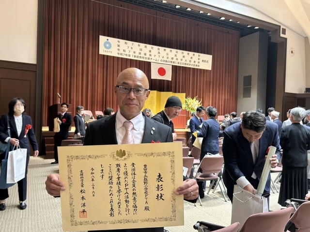 令和6年度日本PTA東海北陸ブロック研究大会愛知大会において、PTA活動の改革を発表した飯野小学校PTAが令和7年度優良PTA文部科学大臣表彰を受賞され令和8年2月6日東京の文部科学省にて表彰式が行われました。