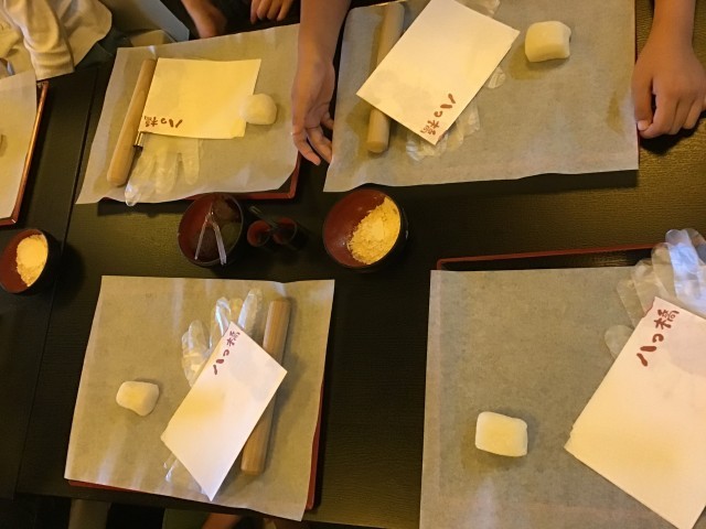 続いて、八つ橋作り体験では、京都の伝統的なお菓子作りに挑戦。自分で作った八つ橋は、お土産として持ち帰りました。なかまと笑顔で作る姿が印象的でした。