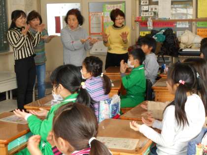 手話、野菜作り、たこ作り、お手玉、フラダンスの5グループに分かれて、校区に住む名人さんから多くのことを学びました。初めて経験・発見したことから、子どもたちはまた1つ大きく成長することができました。