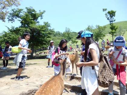 お昼ご飯も終わり、おみやげ&鹿たちとのふれあいタイム!!おみやげは持っていかれないようにね。