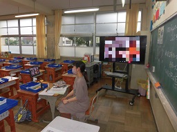 子どもたちは、それぞれの学習場所で先生から配信される動画を受信し、受け応えできました。