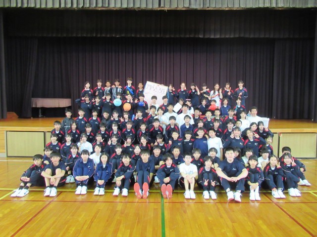 どの種目も一生懸命に頑張る生徒のみなさんの姿がステキでした。最後には全校生徒で記念に写真を撮りました。みんな、とってもいい笑顔です。