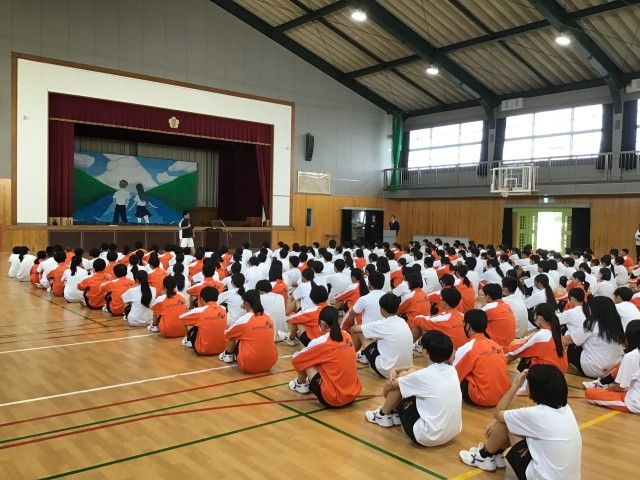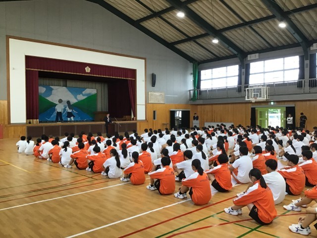 10月14日(火)、後期の始業式を行いました。校長先生から新たな気持ちで頑張れるよう激励の言葉を受けました。生徒は一つひとつの言葉に大きくうなづいていました。生徒指導の先生の話では生活を見つめ直す姿勢がつくれたようでした。