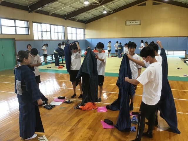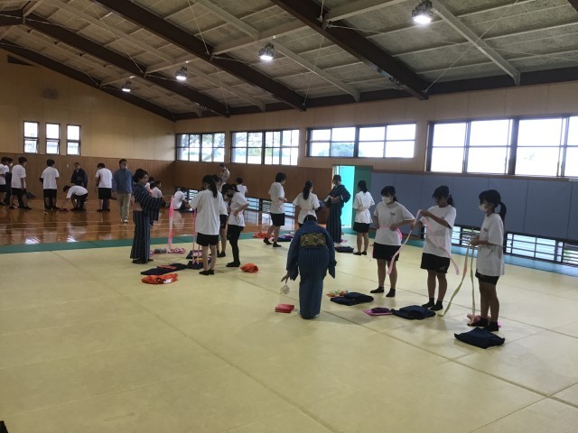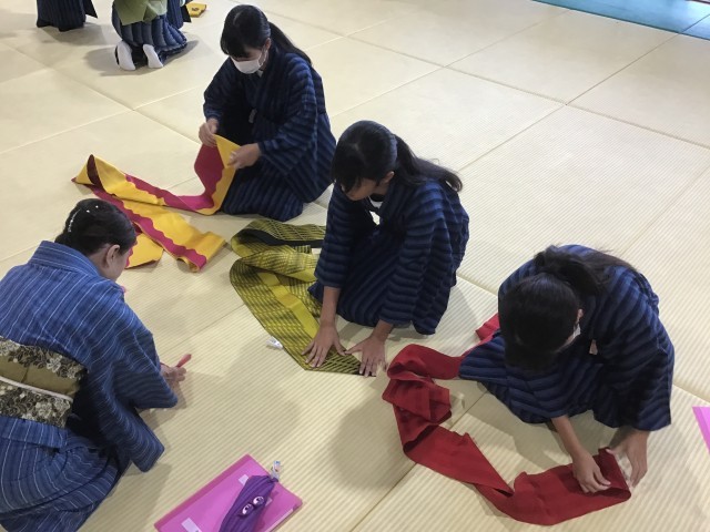 ほとんどの生徒が初めて自分で着付けをしましたが、先生方の丁寧な説明のおかげで参加者全員が上手にできました。