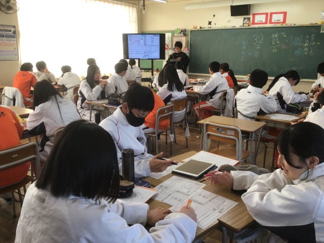 12月4日、5・6限目に人権学習に取り組みました。就職差別の学習をしました。班で話し合いながら自分たちの考えを伝え合うことができました。