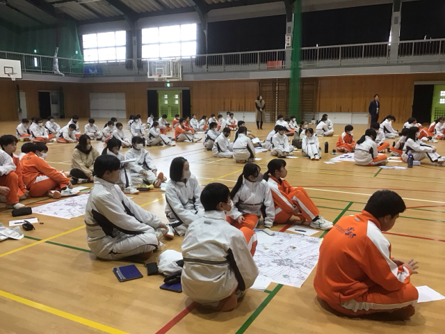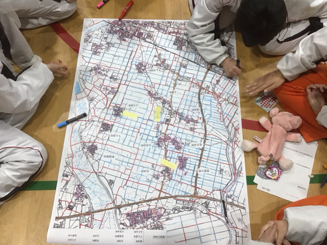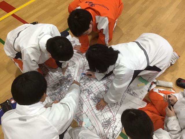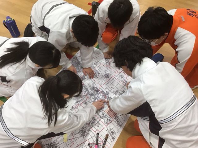 「DIG」という地図を使った図上訓練ゲームをとおして、自分や他の人の命を守るためにどう行動したら良いかを考えました。