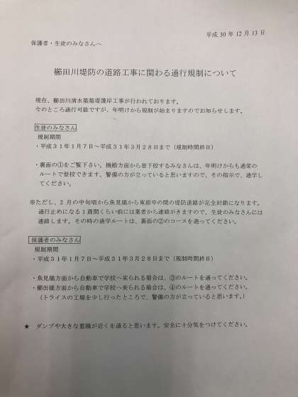 櫛田川堤防の道路工事についてのプリントと地図 公開日 2019/02/09 更新日 2019/02/09 その他 保護者・生徒のみなさんへ 緊急メールでお伝えした内容のプリントと地図です。 いいね(0)
