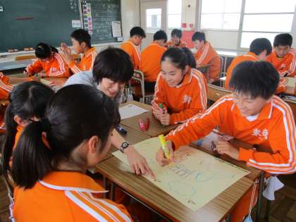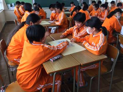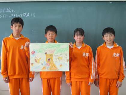 2年生はエンカウンターとして「共同絵画」に取り組みました。4人で心を1つにして、テーマを考えながら作品を作りました。お互いの気持ちを考えながら活動することができました。