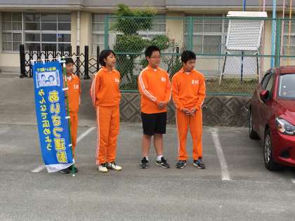 5月14日 生徒会役員が東黒部小学校にあいさつ運動にいかせていただきました。小学生の子たちと一緒に元気にあいさつをすることができました。