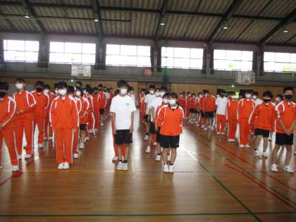 体育祭に向けて、入退場の練習をしました。体育館の中でしたが、しっかり練習できました。