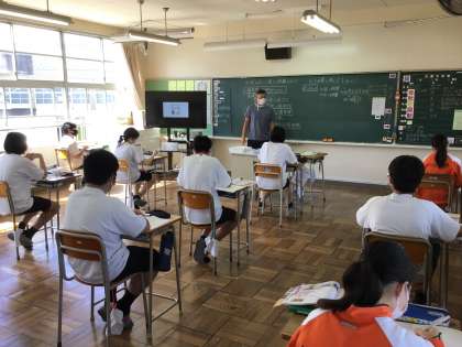分散登校も7日目となりました。昨日でテストも終わり、本日から授業が再開しました。本日と明日は、登校して授業を受ける生徒とオンラインによる家庭学習の生徒に分かれます。本日は前半の生徒が登校で、後半の生徒が家庭学習です。学校での授業は、少人数授業が定着してきたようです。落ち着いて学習に取り組めていました。