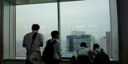 見えるものを確認したり45階から見る人の小ささにびっくりしたりしていました。