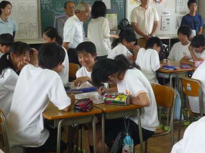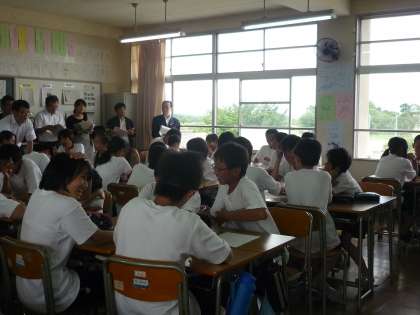 6月27日(水)、1年生の公開授業を行いました。学級の誇り(基本ルール)を作ろうと各班がまず「されてうれしい行動」逆に「されて嫌な行動」を話し合い発表し、それに基づいて学級の誇り(ルール)を決めていくという内容です。各班の話し合いを中心に授業がすすめられました。
