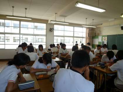 7月2日、3日の6限目に女性の人権にかかわる問題を解決するための学習を行いました。生活していくうえで人間関係のなかにある「ちがい」について「あってもよいちがい」「あってはいけないちがい」という視点で4人班になりカードを使って考えました。また、生徒は男性の幼稚園教諭へのインタビュー資料から男女共同参画社会についても考え、これまでの学習についての反省をまとめていました。