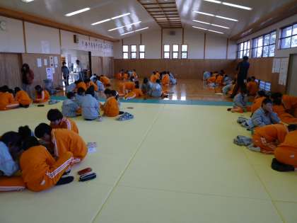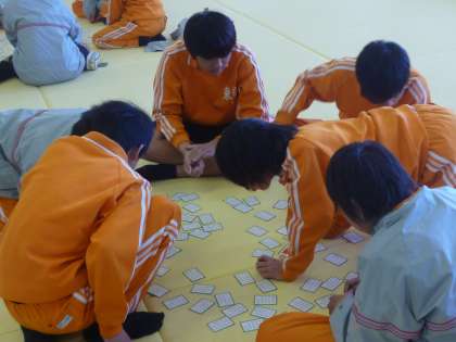 1月28日(月)の5,6限目に百人一首大会をしました。各班6人で18グループに分かれて対戦しました。クラス対抗の結果はA組が優勝。個人では1位から10位までと各グループの1位が表彰されました。大会は盛り上がり、みんな楽しそうでした。