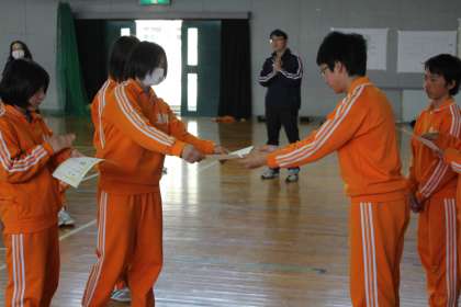 3月13日(水)の1〜4限目に、球技大会を行いました。体育館でドッジボールをし、男女別とミックスの3つでクラス対抗戦を行いました。どのクラスも円陣を組んでから試合に臨み、優勝に向けて頑張りました。結果は、男子はB組、女子はA組、ミックスはA組が優勝でした。