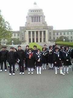重々しい警護の中、集合写真を取りました。先程まで外では抗議デモのシュプレヒコールが行われていました。