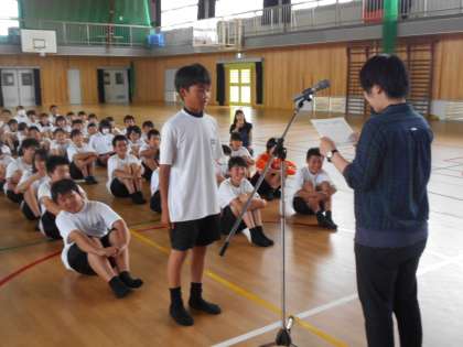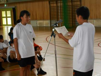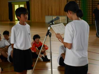 遠足新聞の表彰式が行われました。みんなが投票し選ばれた新聞数点と、先生たちがオリジナルの視点から選んだ新聞を数点、表彰しました。名前を呼ばれた人は、恥ずかしがりながらも嬉しいそうな表情で受け取っていました。9月に第二回の新聞コンテストがあります。今回の工夫を参考にして頑張って取り組みましょう。