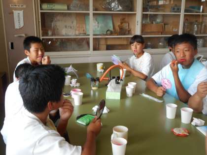 1年生 歯と口の健康教室 公開日 2018/09/11 更新日 2018/09/11 1年生 9月6日に松阪歯科衛生士の方々に来ていただき、ブラッシング指導を行いました。虫歯や口の中の病気を教えてもらい、その予防の為の歯磨きの方法やいつも口に含んでいる物の中に含まれている砂糖の量などを教えていただきました。自分達の歯磨きと全く違う方法もあり驚いた表情も見られました。これからも健康な歯を保つ為に日頃から気をつけていきましょう。 いいね(0)